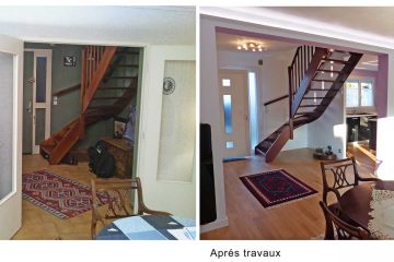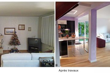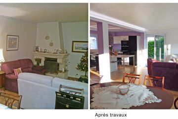 Сначала пространство было переделано для создания единицы жилой площади. Центральная колонна, одетая и превращенная в декоративную мебель, является переходным элементом между четырьмя пространствами жизни.