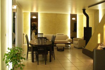 Мы переработали «дневную часть» этой виллы, объединив небольшие замкнутые пространства в одно большое и светлое помещение.