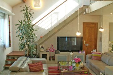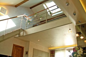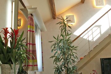 Кроме того, открытие крыши над гостиной улучшает приток естественного света и предлагает в красивом окне угол синего неба, видимый с сиденья дивана.