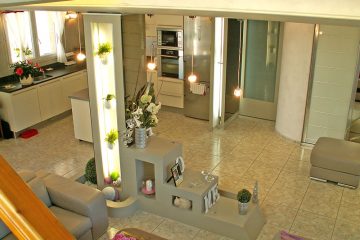 Построенная геометрически вокруг центрального столба, организация пространства этой виллы ограничена для владельцев, желающих увидеть их интерьер по новому.