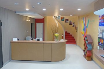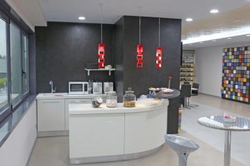 D’inspiration Art déco, centrée sur les Emaux de Briare qui ont constitué le fil directeur de cette rénovation, associant des formes rectilignes et courbes et créant ainsi une atmosphère unique à la fois douce et chaleureuse.